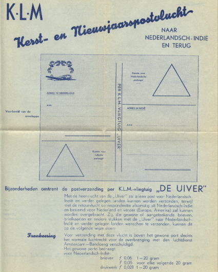 | K.L.M. Air Lines Advertizing for the above envelope Size A, printed on both sides | ![]() | |